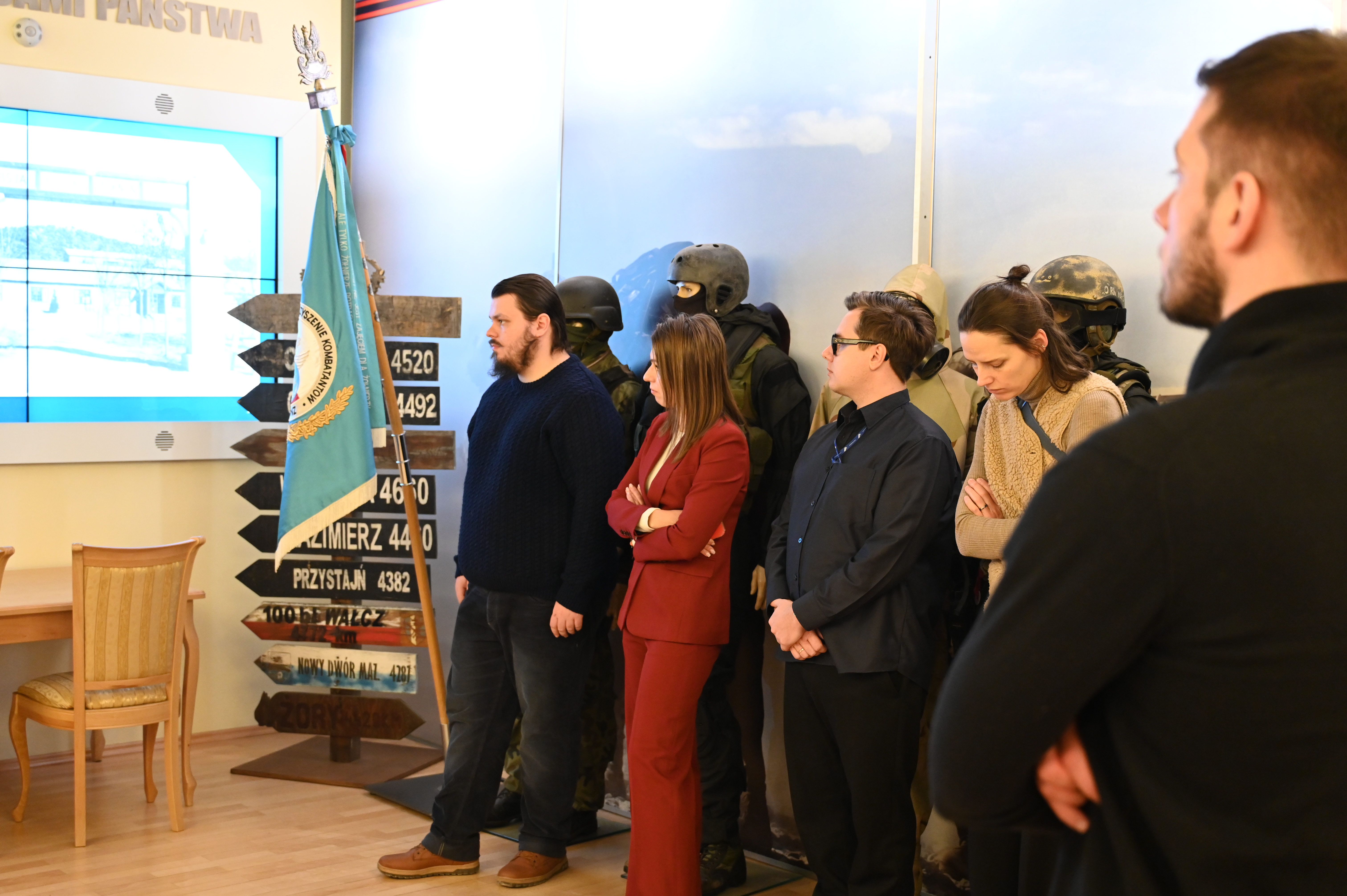 Ważnym elementem spotkania było również zwiedzanie Sali Tradycji pod opieką jej kustosza, Tomasza Jasionki. To właśnie tam słuchacze mogli zobaczyć niezwykłe pamiątki dokumentujące udział polskich żołnierzy w operacjach międzynarodowych i zrozumieć, jak istotną rolę odgrywa Centrum w budowaniu i przekazywaniu historii o weteranach kolejnym pokoleniom.