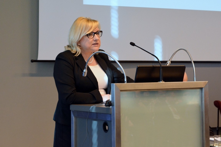 Szef KPRM Beata Kempa przemawia przy mównicy.
